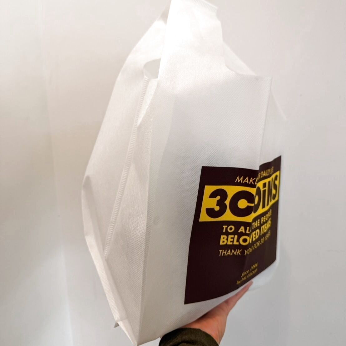 3COINS公式の30周年企画として、30年前に使われていたショッピングバッグのデザインを復刻したアイテムで、店舗限定・数量限定で供給数が限られているので、気になる人はお早めにどうぞ!