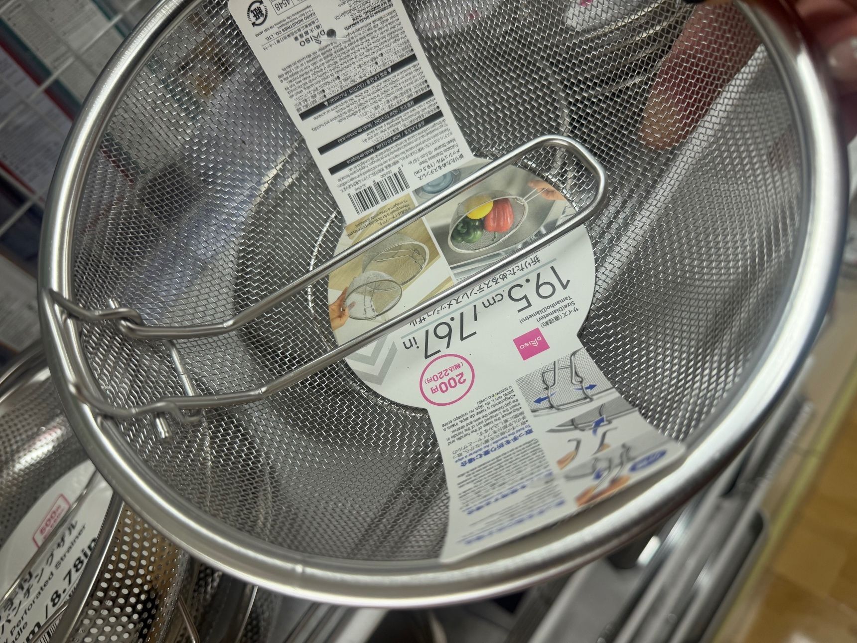 まずは、普通の柄つきザル。自宅で使っていたものに似ていますが、ステンレスで330円と破格!