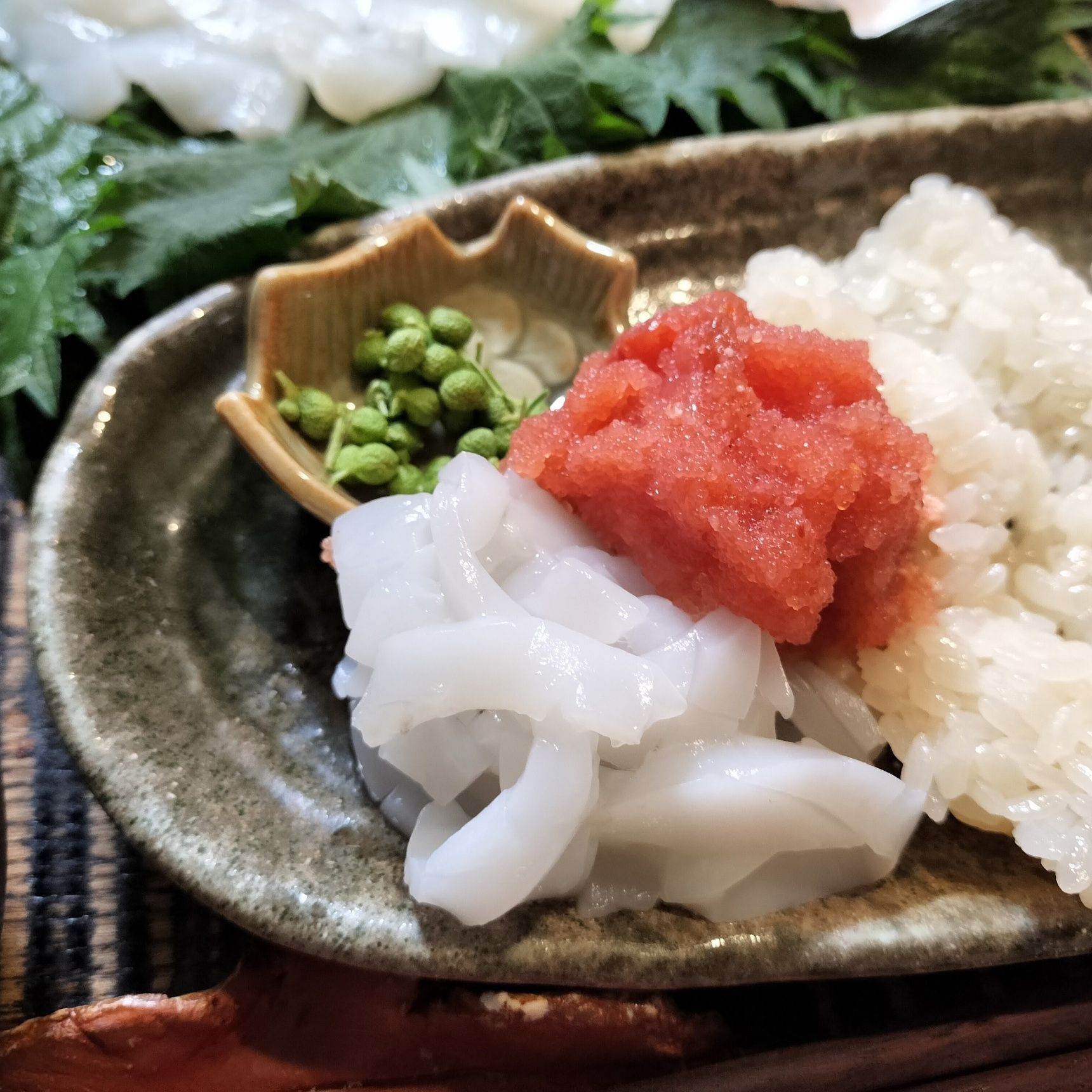 甲イカ・辛子明太子・実山椒を軽く混ぜ合わせて、いただきまーす!