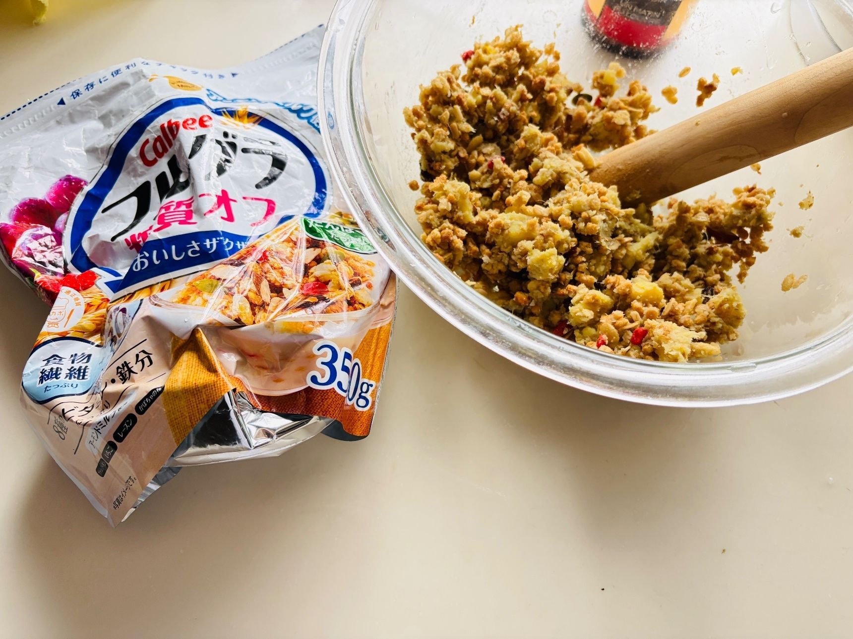 オーブンで焼くと、グラノーラバーにもなりますよ。 筋トレなど、運動後にも良いですよ。 グラノーラとさつまいもの組み合わせは、食物繊維も豊富で、腹持ちも良く、血糖値も上がりにくので、ダイエットにもおすすめ!
