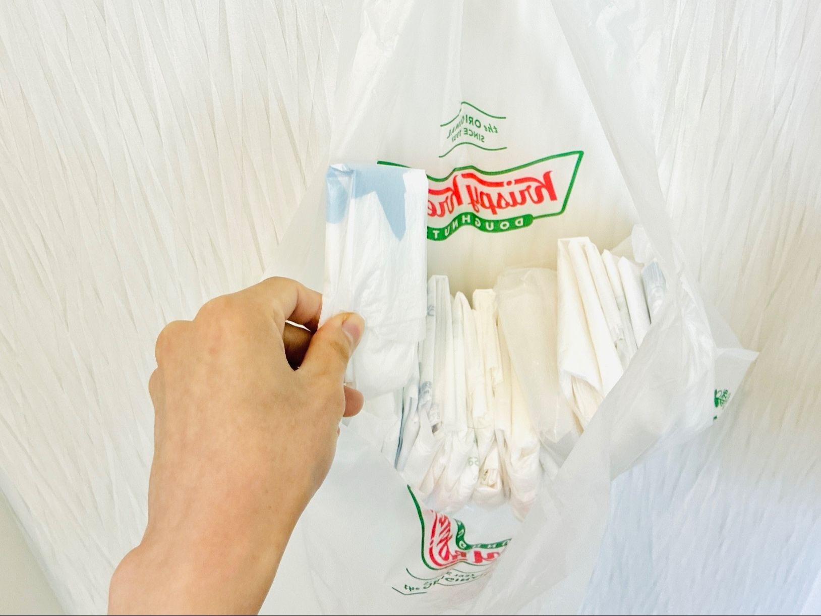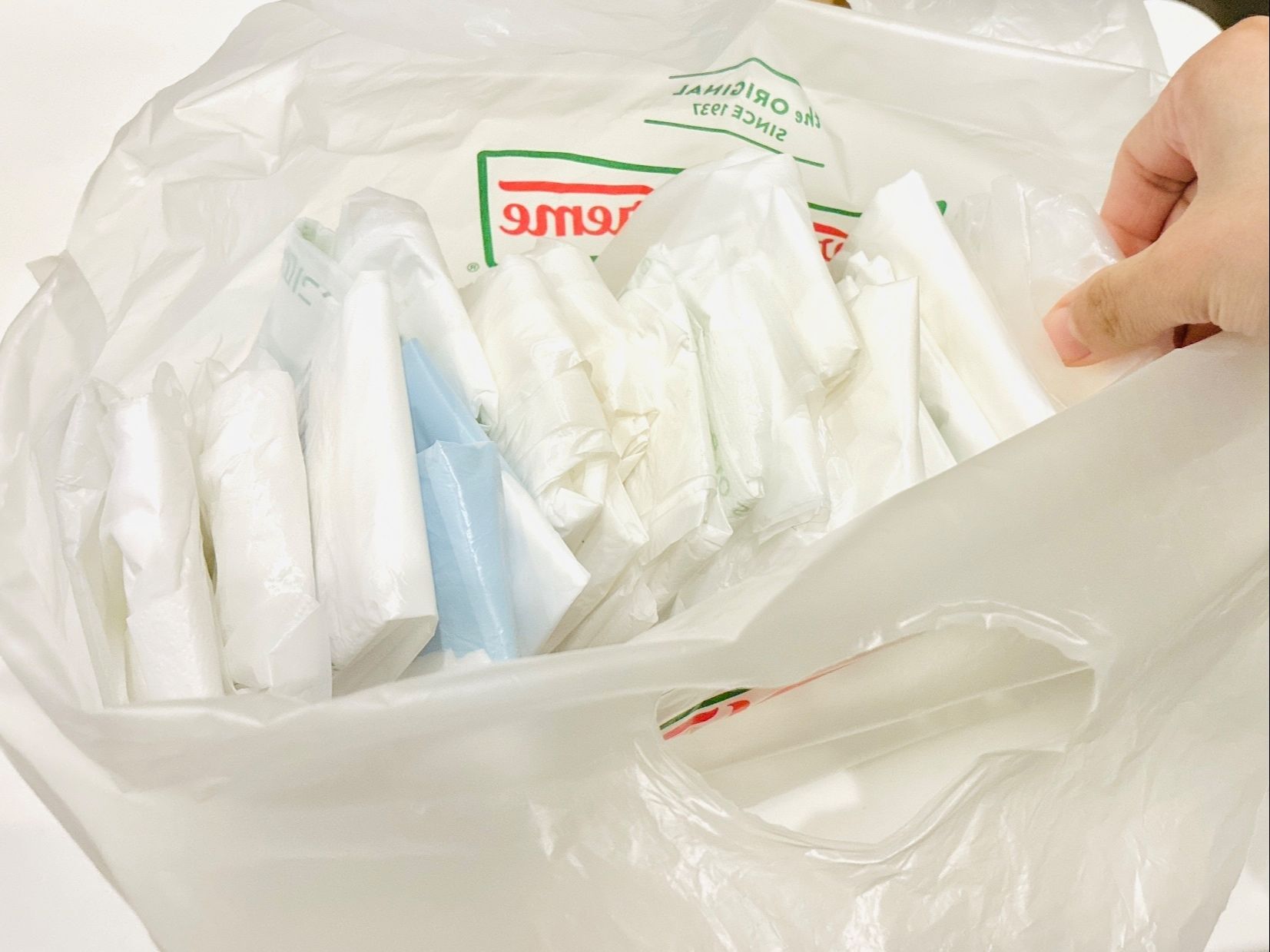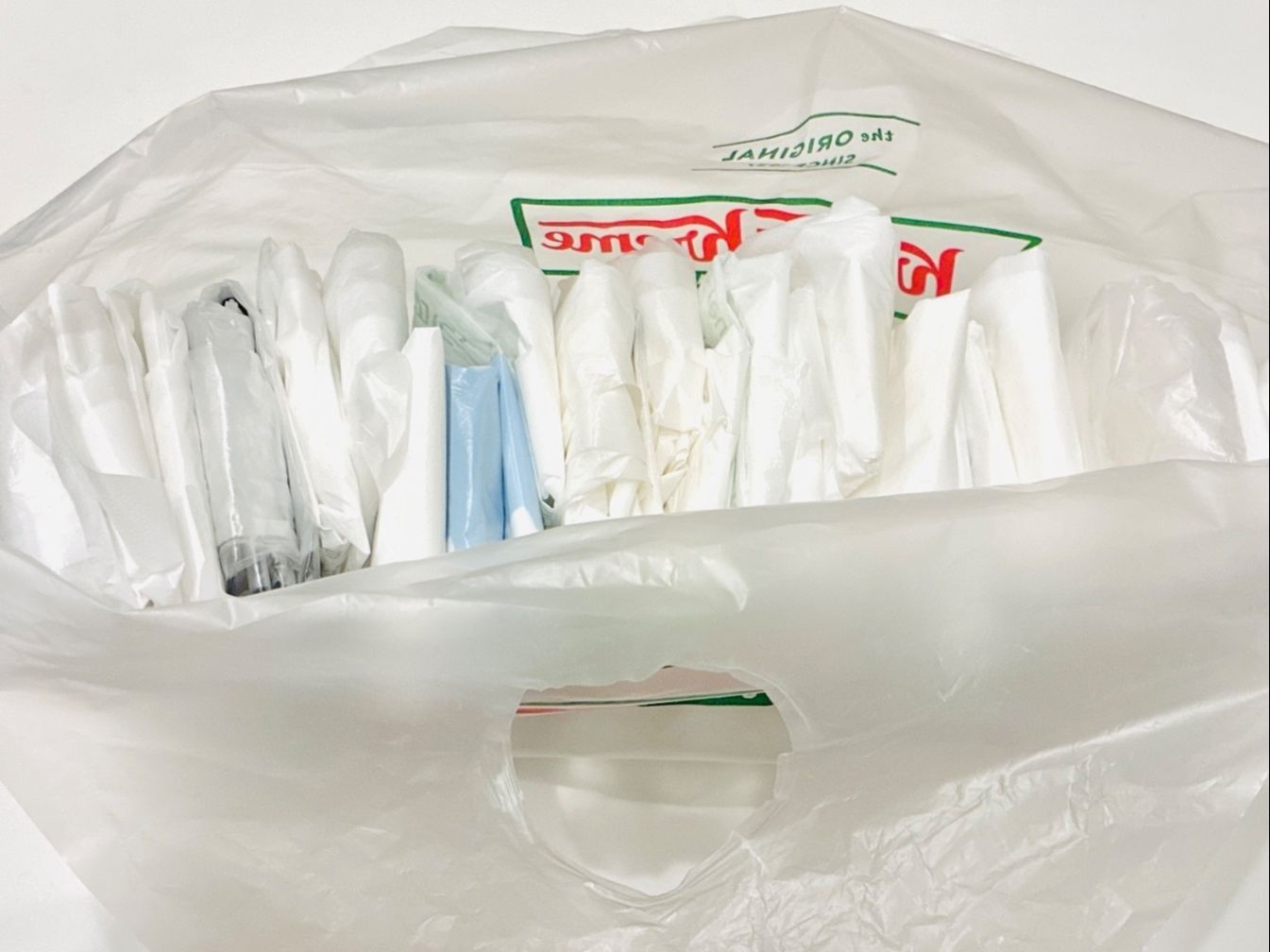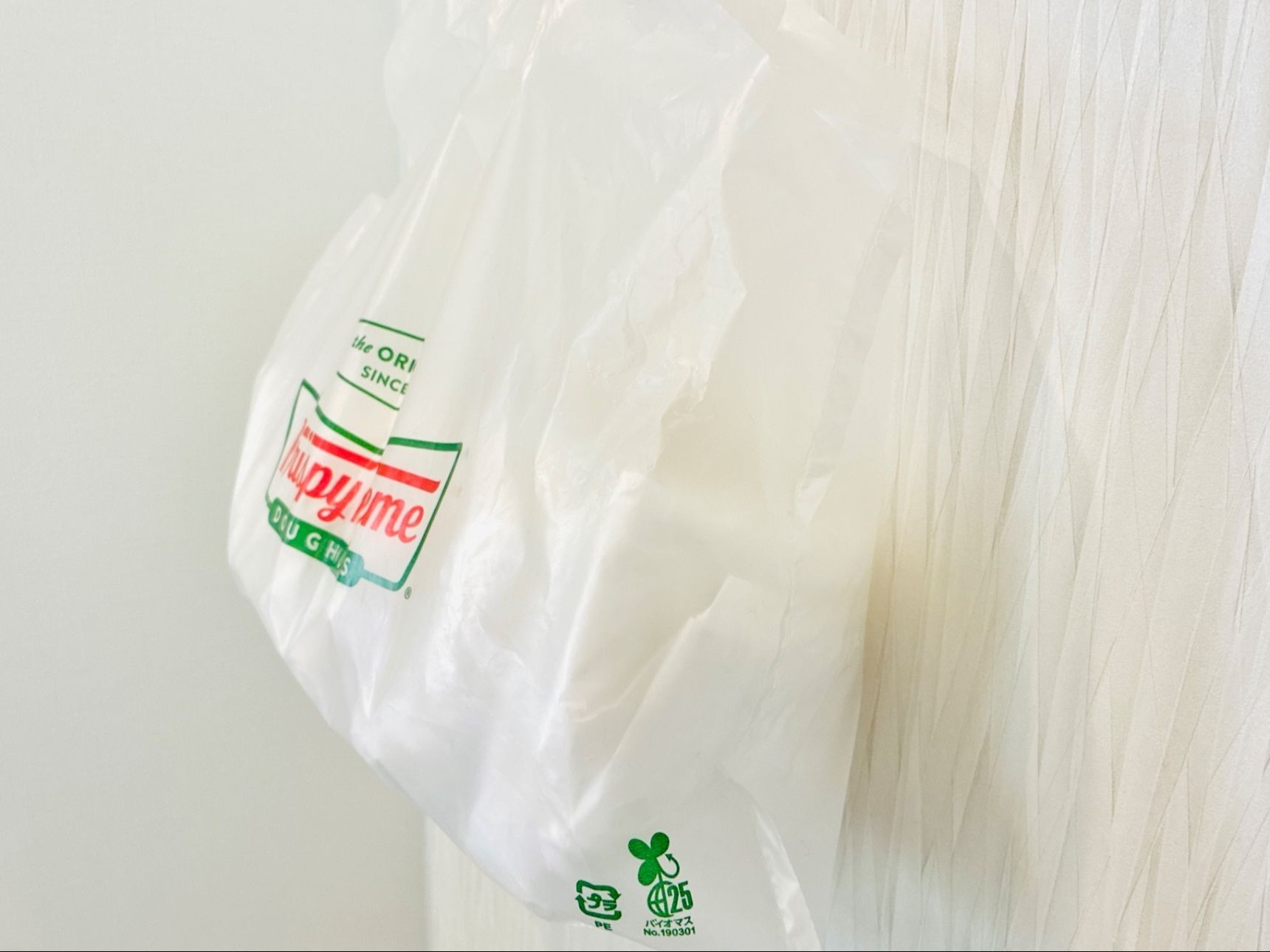 基本的にはエコバッグを使っていますが、足りない時や予期せぬ時に購入することのあるポリエチレン素材のお買い物袋。