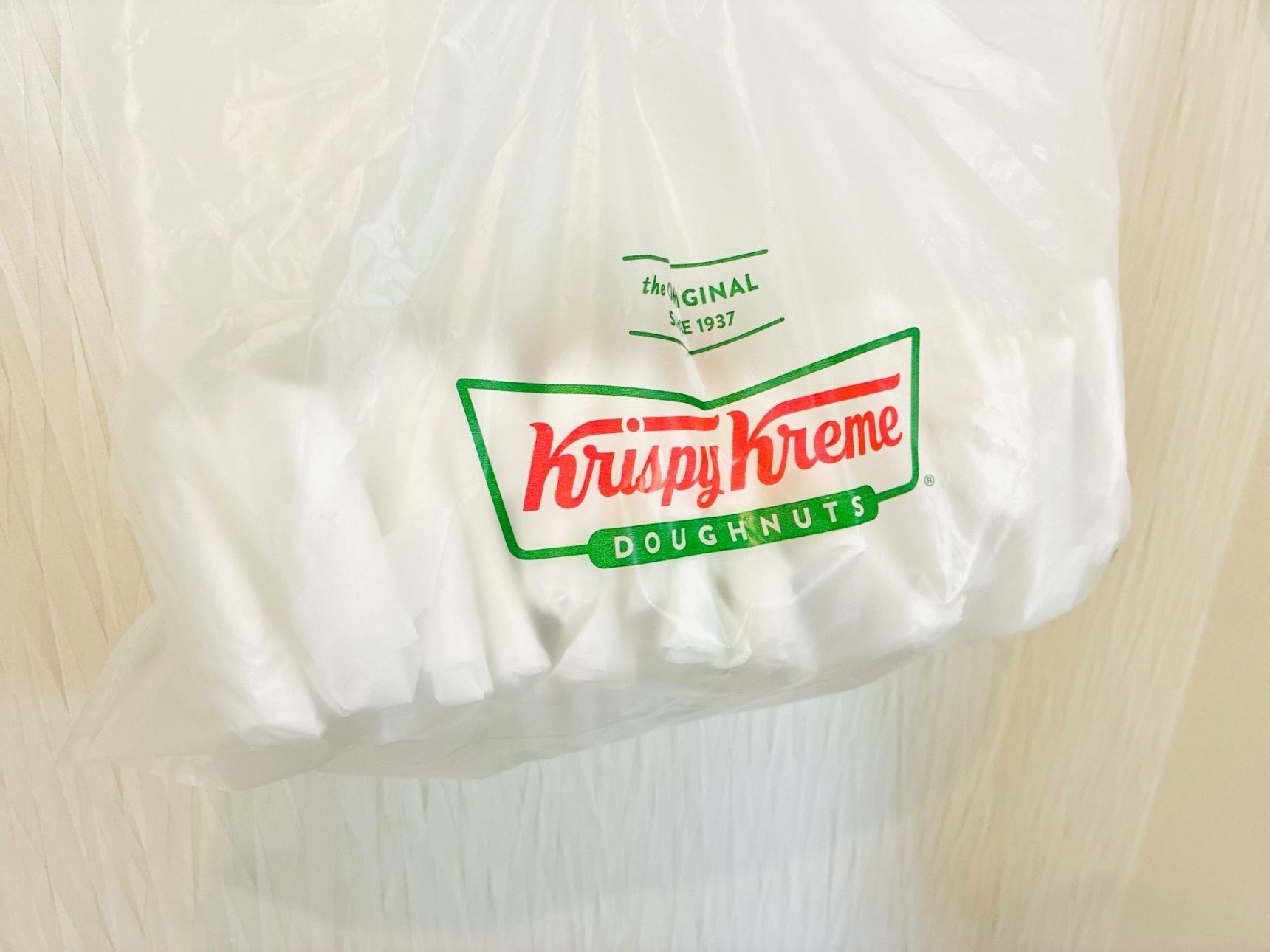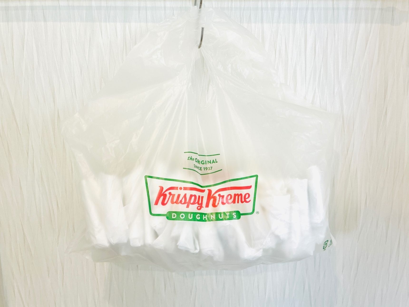浅くて横長いお買い物袋。ドーナツなどを買ったらこんな形状の袋に入れてもらえますよね〜。