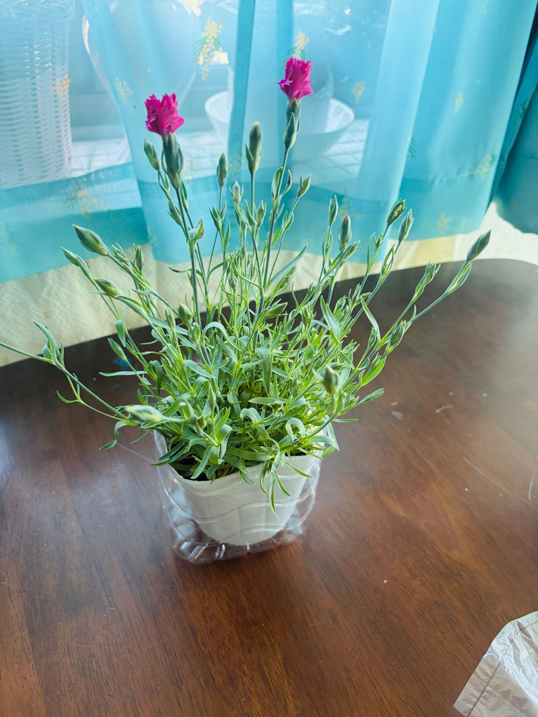 使っていない藤の鉢カバーに入れます。 雰囲気も良くなって、スーパーで買ったお花には見えなくなると思いますよ。 ご参考になりましたら幸いです。