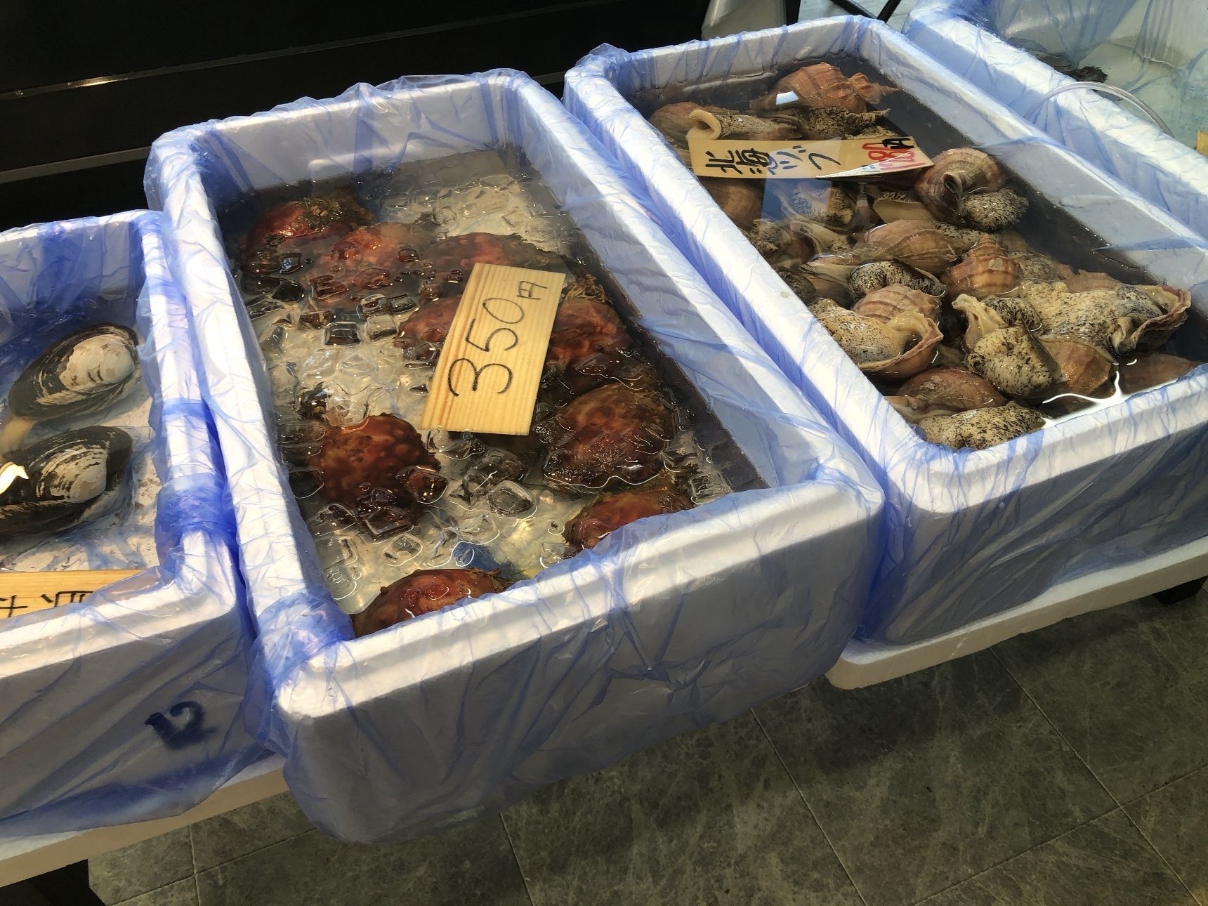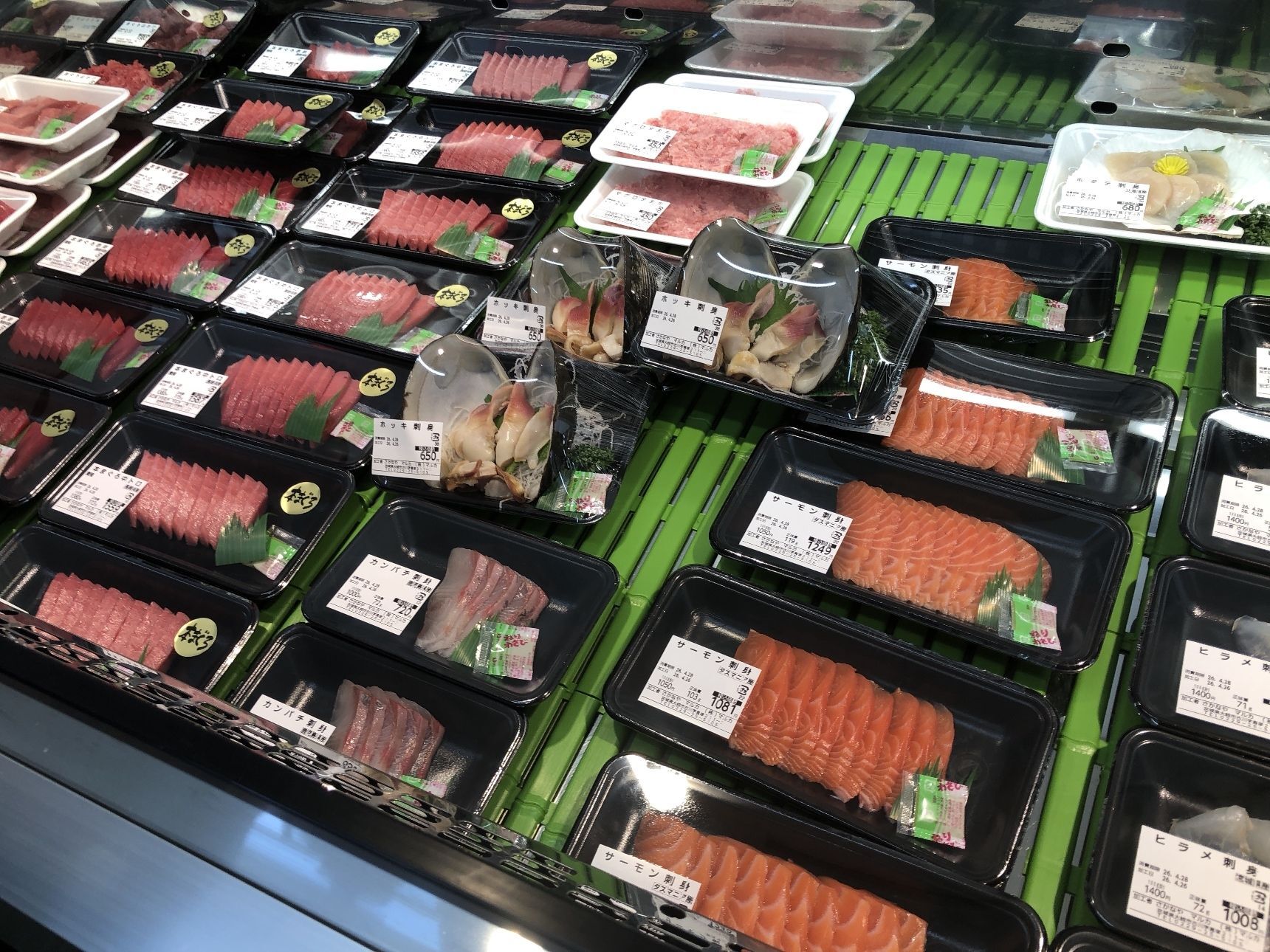 焼き魚、うなぎ、惣菜コーナー、お刺身、貝、魚。食べやすいように加工された商品が多いように感じます。