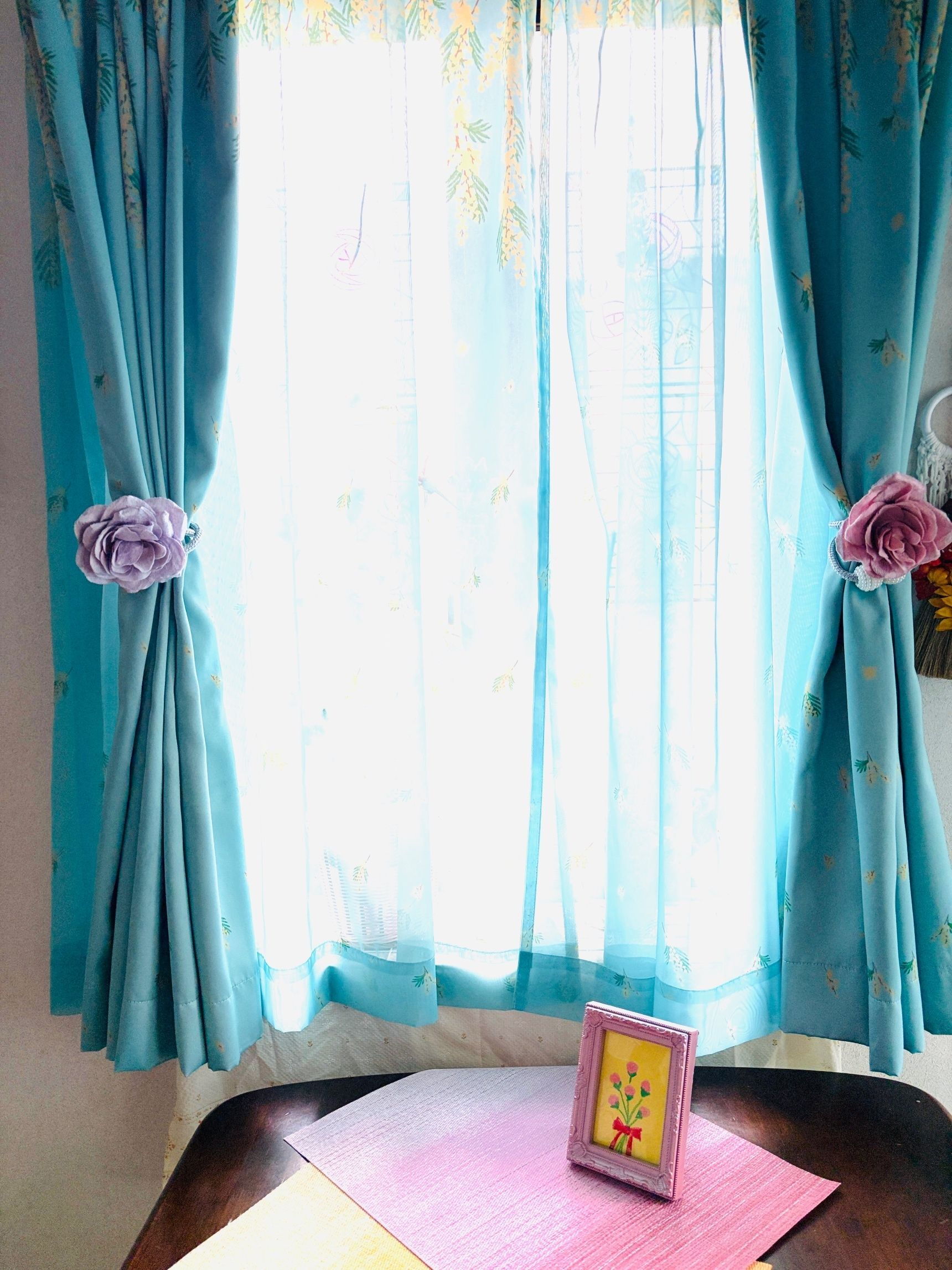 カーテンのタッセルも凝ったものが多いので、趣向を変えてアレンジしてみても面白いですよ。