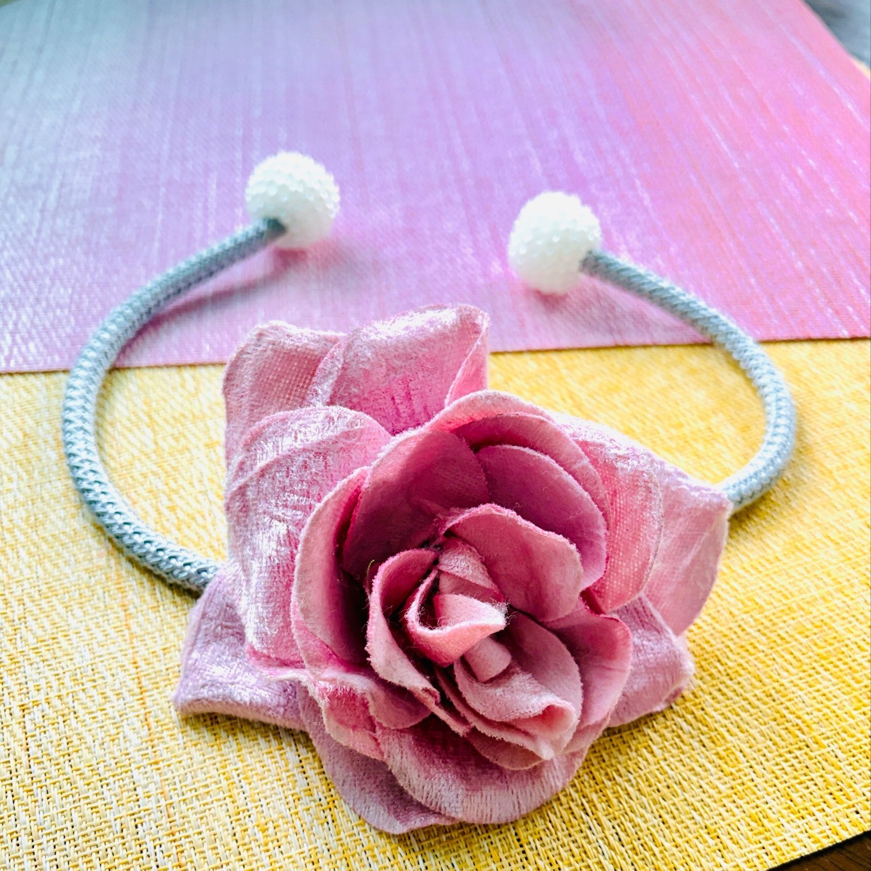 フェイクフラワーを真ん中に糸で縫いつけます。
