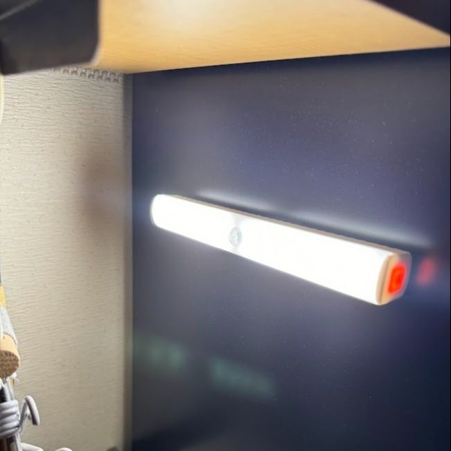 周囲が暗いときだけ人の動きに反応して点灯します。人がセンサーに向かって直進すると反応しにくい場合があるため、左右に横切る場所への設置が推奨されています。