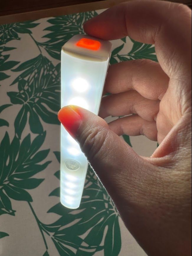 非常時に持ち出す際は、スイッチを「ON」にスライド固定すれば、ずっと光り続ける手持ちライトとして活用できます。