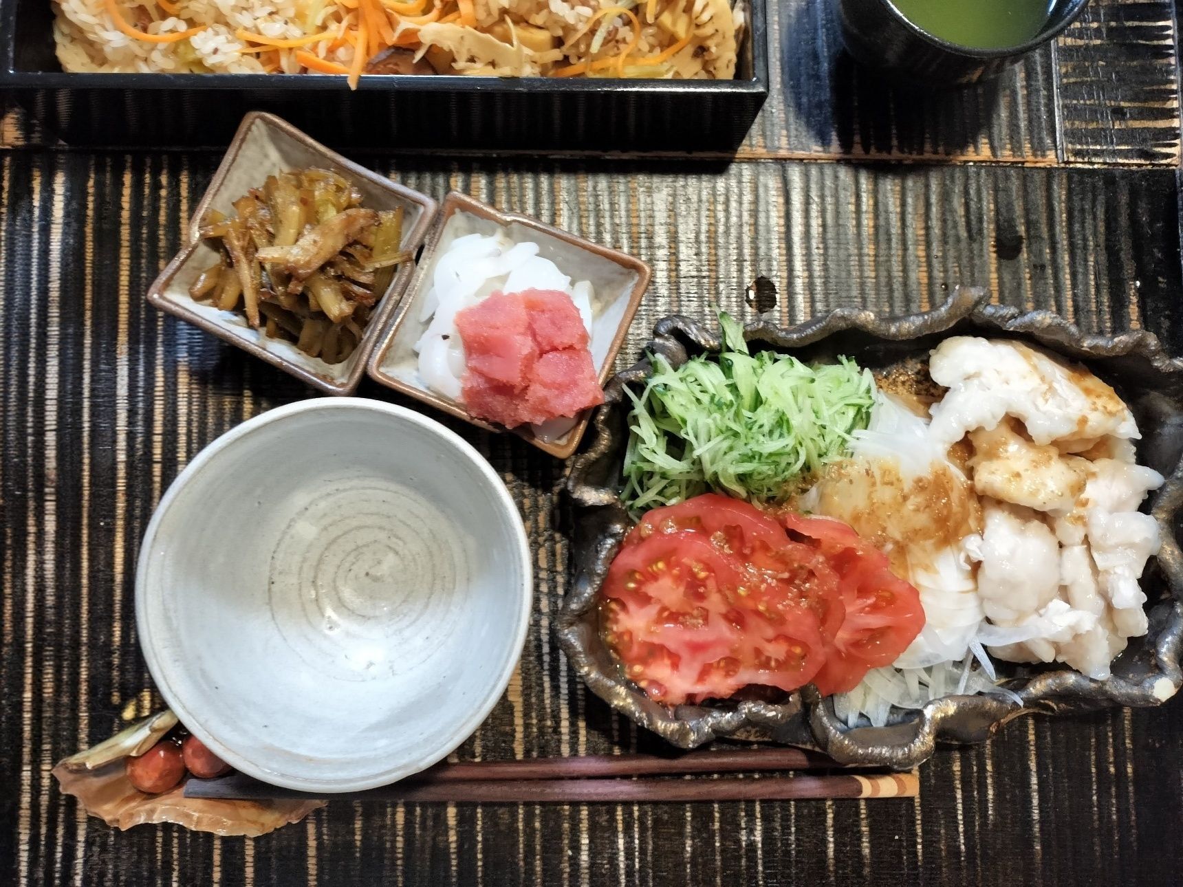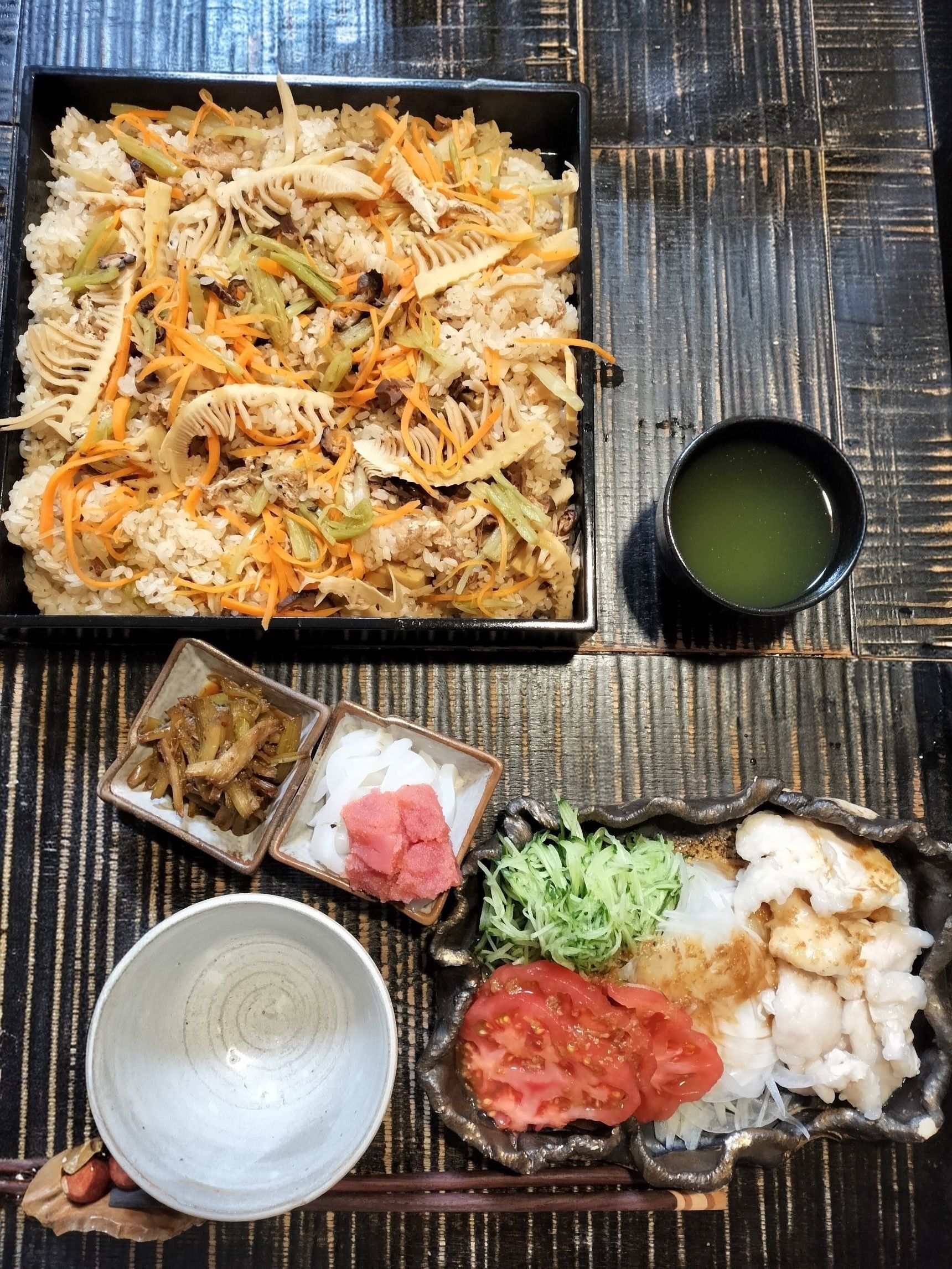 (今回は、黒舞茸とぜんまいの代わりに、旬のたけのこと干し椎茸を使用)