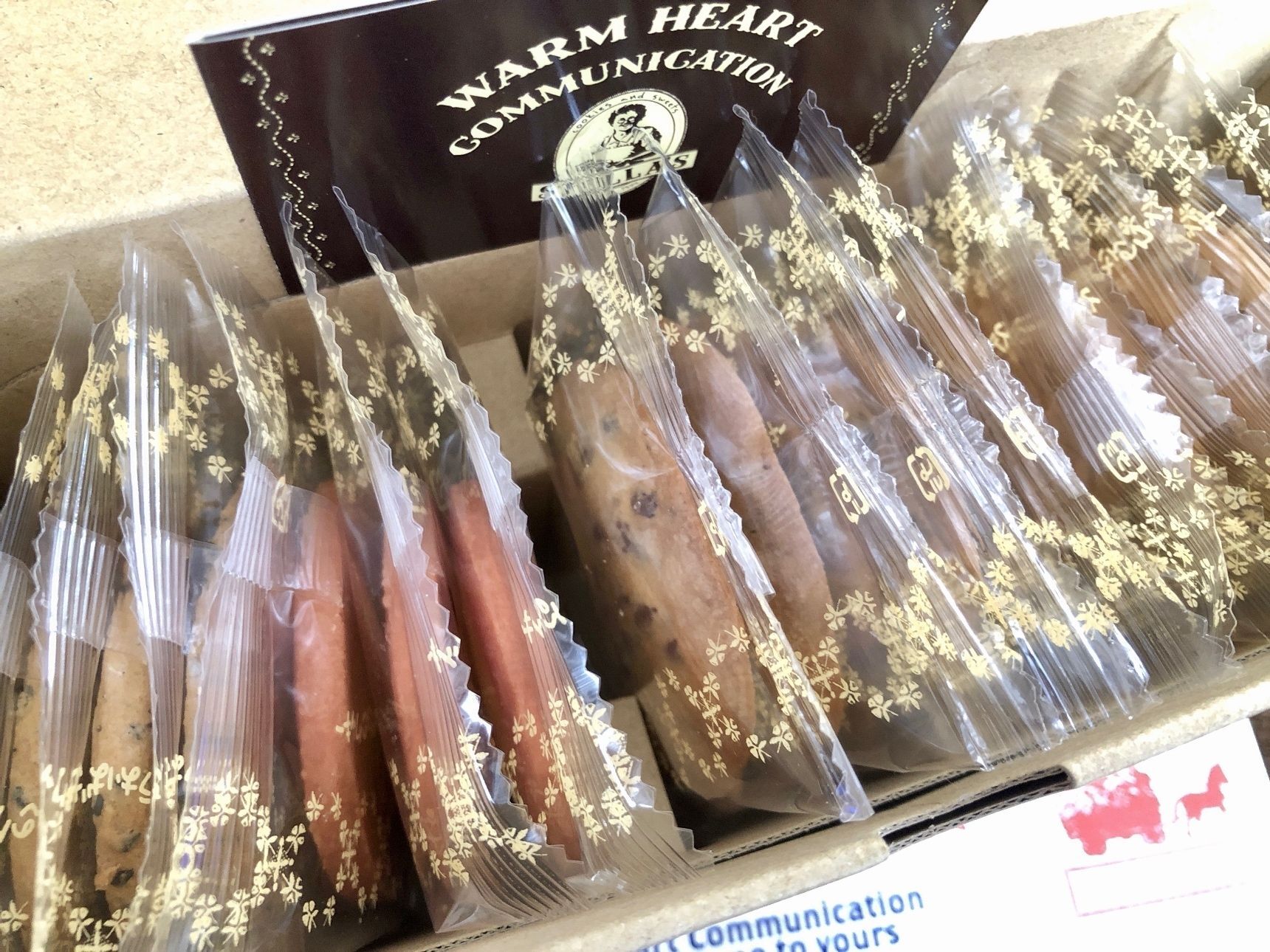 箱は仕切り付きでクッキーが割れるのを防いでくれています。また、種類毎にも分かれているのでとても分かりやすいですね。