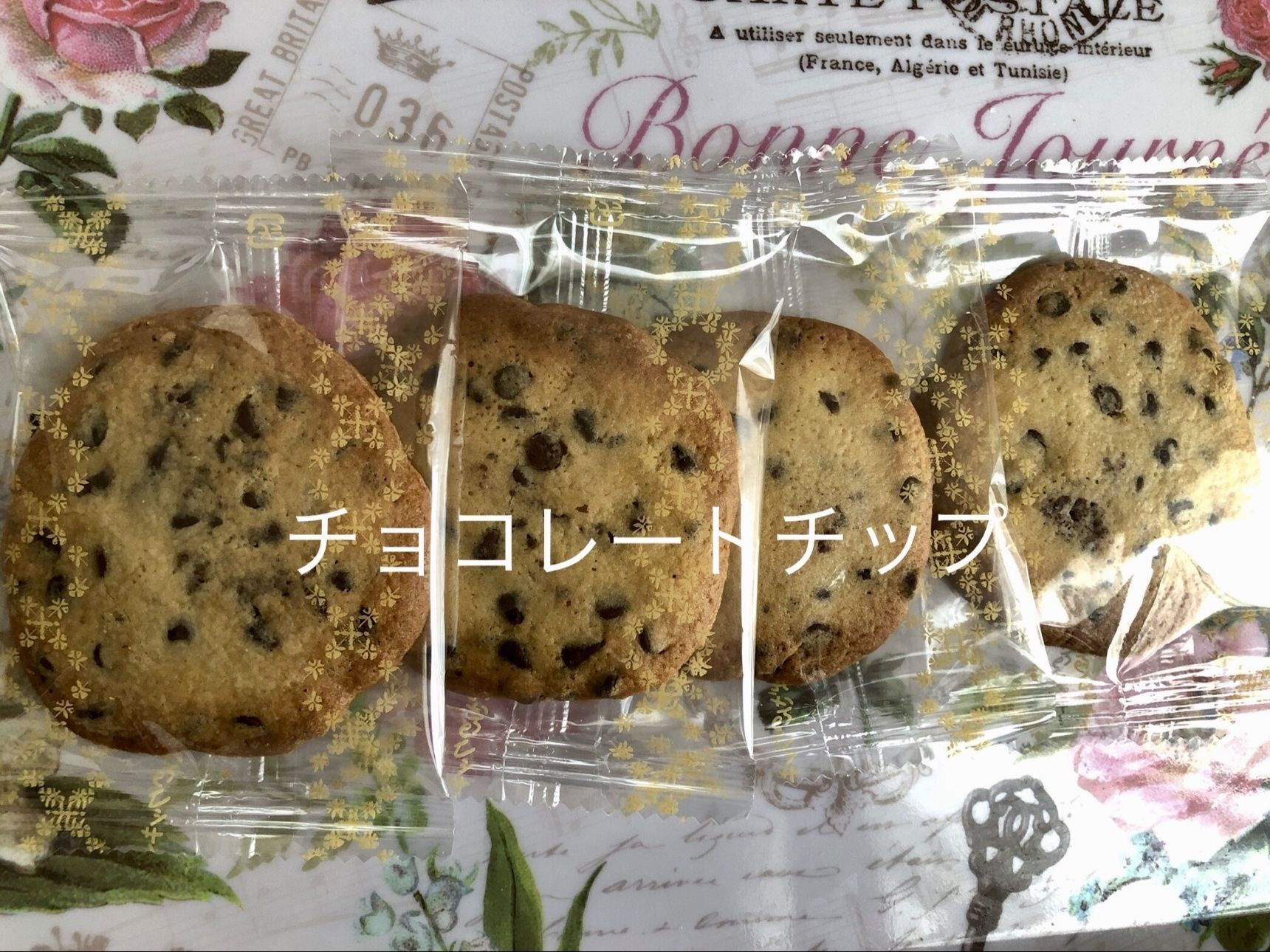 チョコレートチップ4枚、他のクッキーは各3枚ずつ入っています。