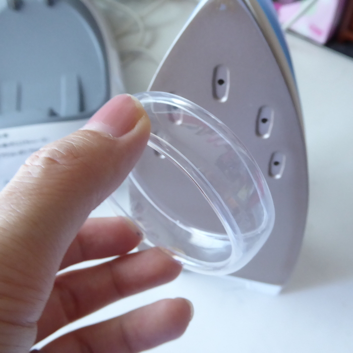 温かくなったらペットボトルの断面をアイロンにスリスリしてあてていきます。