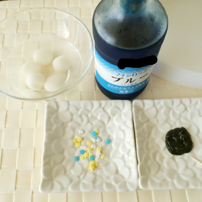 子供用の白玉は1〜3個等、お母さんが様子を見ながら個数は決めて下さい。すぐ白玉に手を伸ばしがちですので、‘よく噛んで食べるように,丸ごと飲み込んだりしないように’大人がしっかりと見ていられる所で食べさせて下さい。