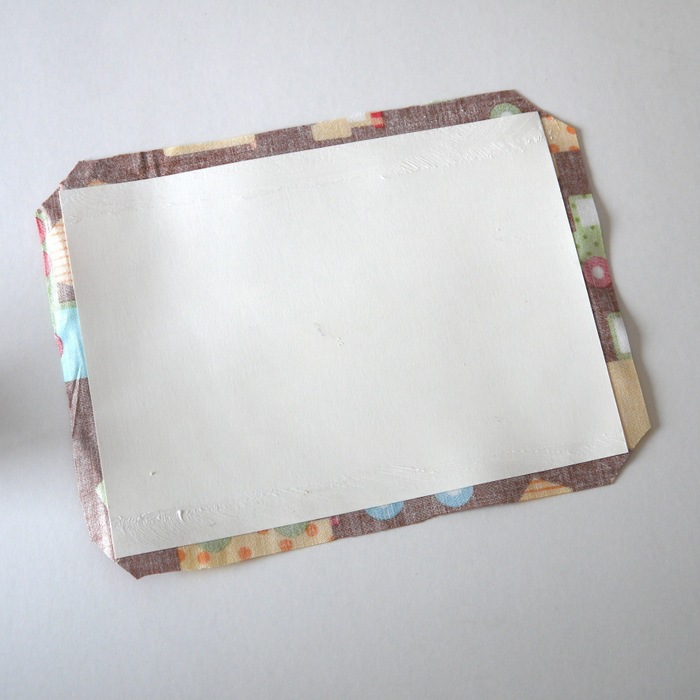 画用紙を切って、画用紙にボンドを塗って布を貼ります。