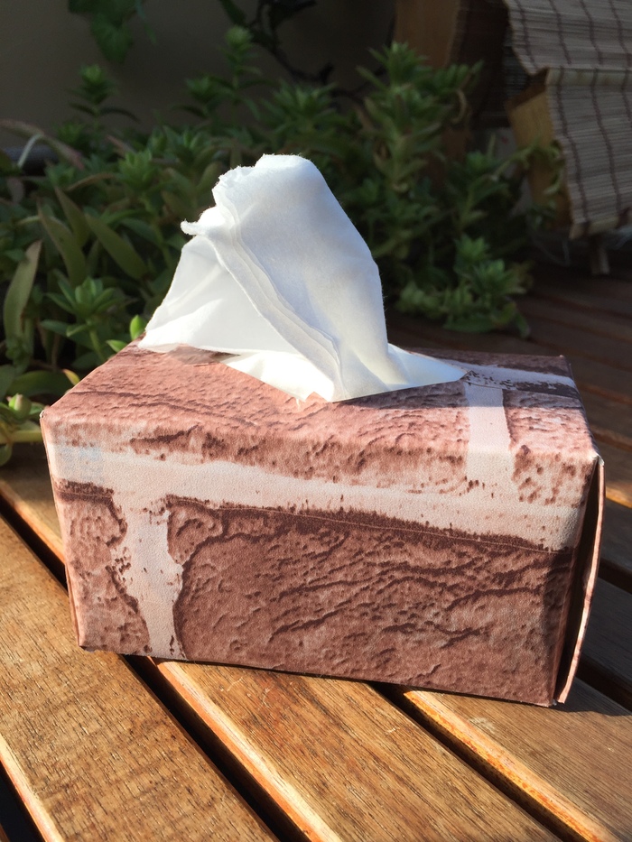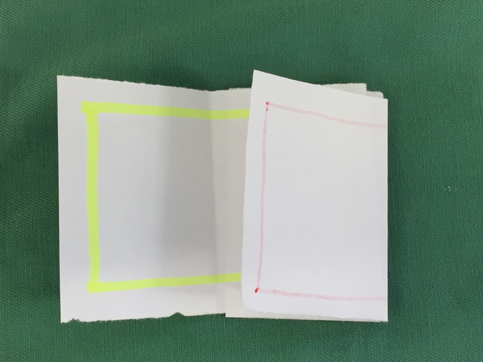 次に新たなティッシュ(黄色)を再び中央に合わせて重ねます。