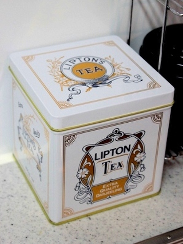 この大きな白い紅茶缶には、今はまっている「あおさ」を入れてます。