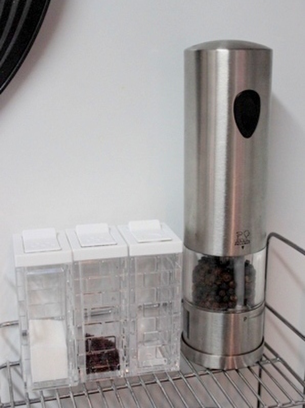 このペッパーミル、スイッチを押すと電動でブラックペッパーを挽いてくれて、粗さも調節できる上、