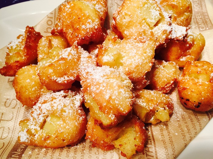 ティースプーンで生地をすくって170℃の油でキツネ色になるまで揚げます。