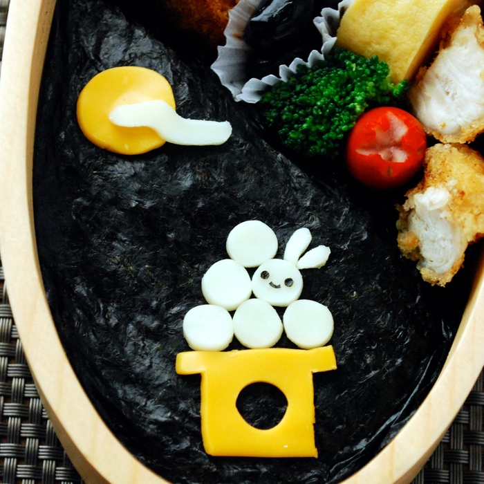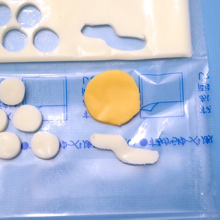 お月様はチェダーチーズを丸くカットして、プレーンチーズを雲の形にカットします。