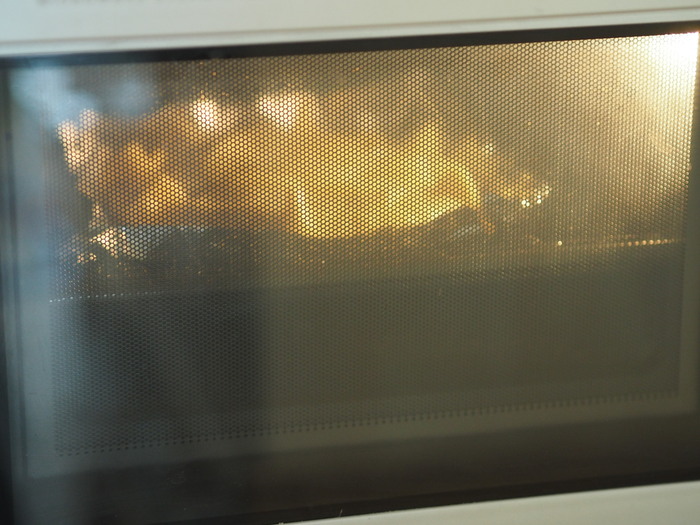 12.11をアルミ箔の上にのせ、それを鉄板にのせたら、200度に予熱したオーブンで40分くらい焼けば完成!