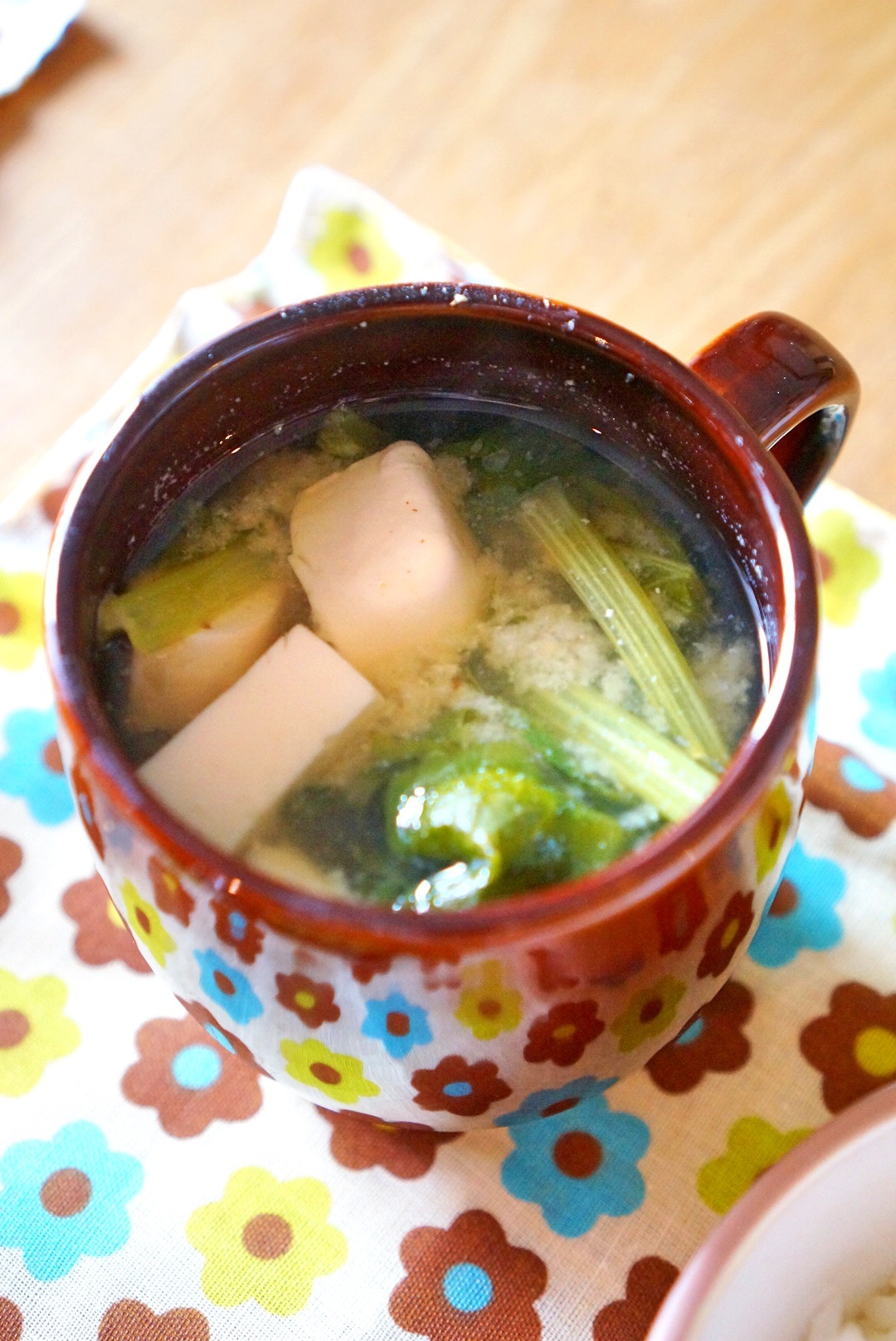 正しくはお味噌汁は右側。ご飯は左側です。ちょっと違和感ある写真になってしまってすみません。