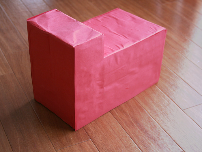 前部分は牛乳パック2本を立てて、お尻を乗せる部分はパック4本を横に2本づつにします