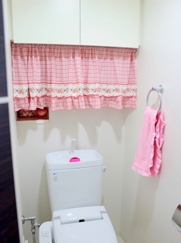 可愛いカフェカーテンで隠せば、インテリアにもなります♪