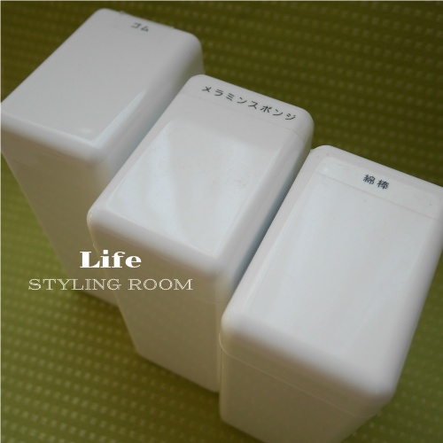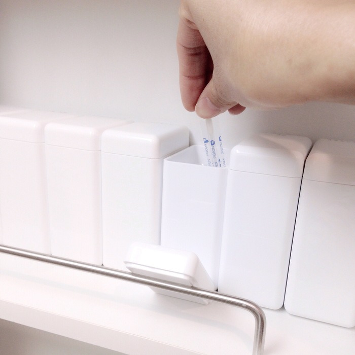 無印良品 アクリルケースを使って洗面所で使う細々としたものを1ケース1アイテムずつ入れています。