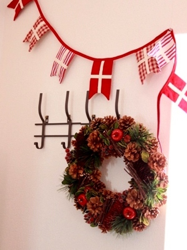 本来は玄関ドアに飾りたいリースですが、マンションの高層階に住んでいるので、風でリースが飛ばされてしまいます(泣)。