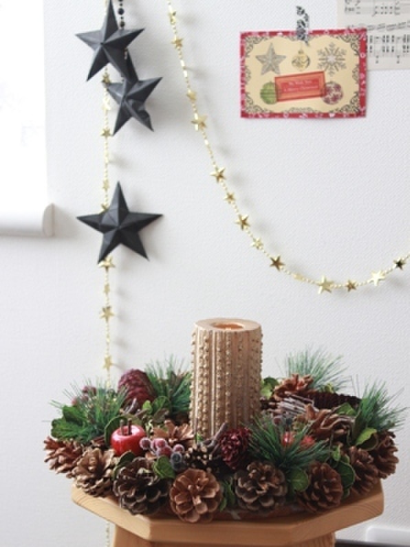 真ん中にキャンドルを置いてテーブルの真ん中に乗せれば、クリスマスパーティーも盛り上がりそう★