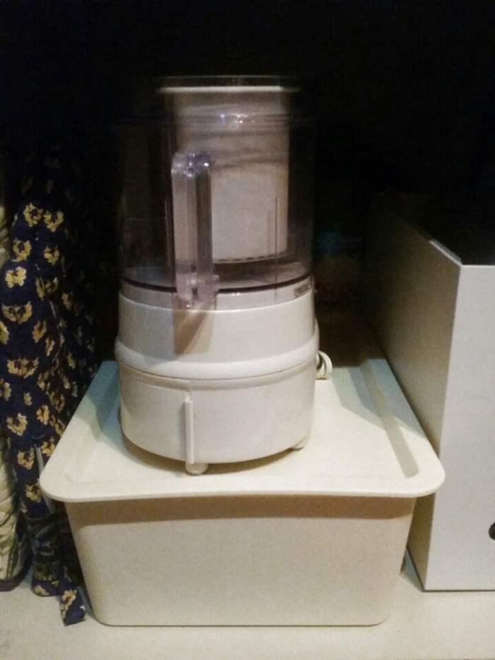 別売りのフタを使い、上にはフードプロセッサーを置いています。