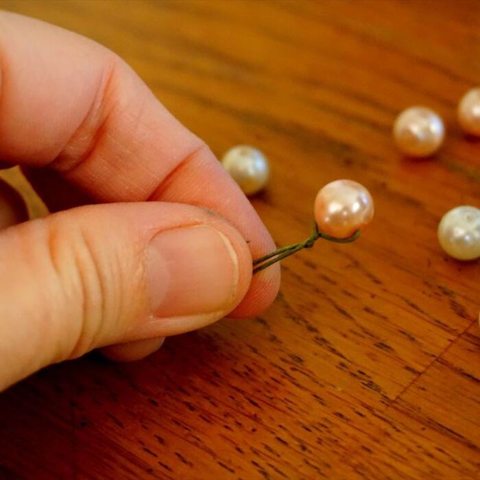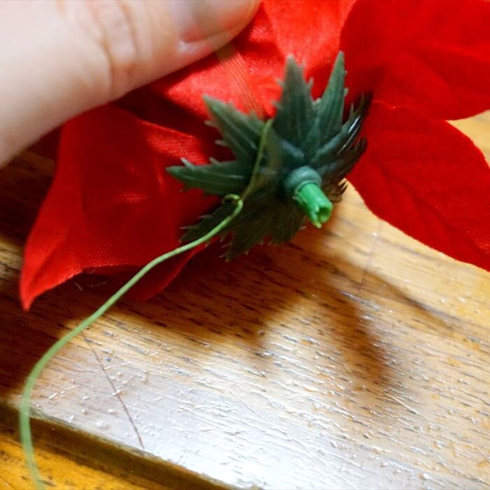 ポインセチアの造花もがくにワイヤーをかけてねじります。