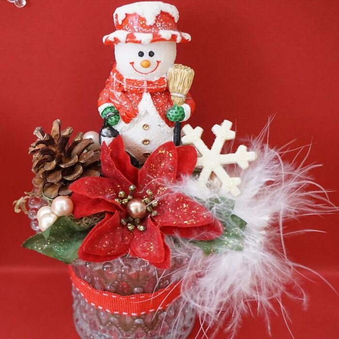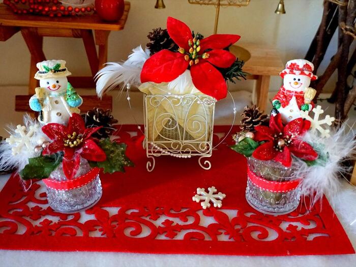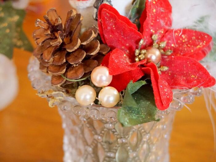 後ろのポインセチアのアレンジの作り方はこちらで紹介しています。