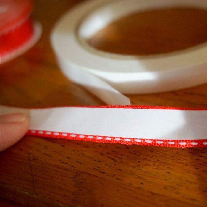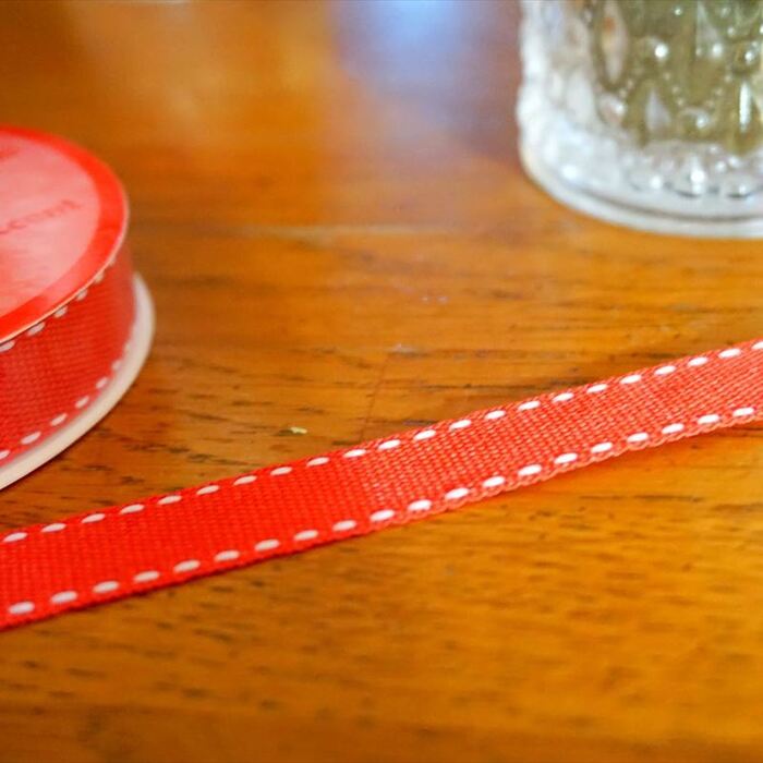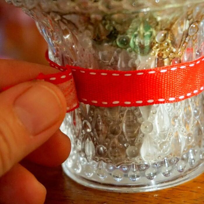 リボンをガラスの器を1周+2cm程度の長さにカット。