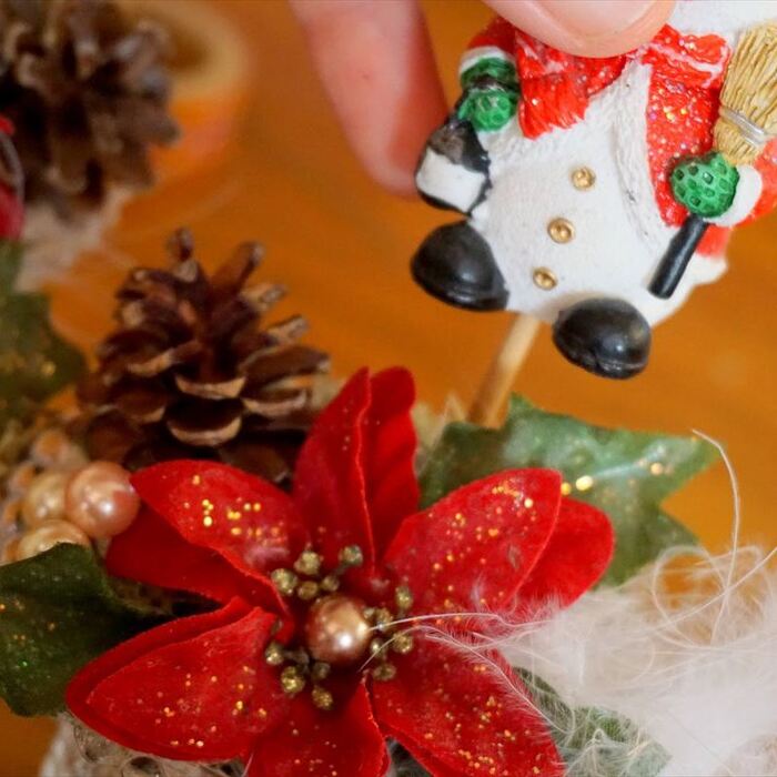 雪の結晶の飾りは添えただけですがしっかり止めたい場合はワイヤーをかけると落ちません。