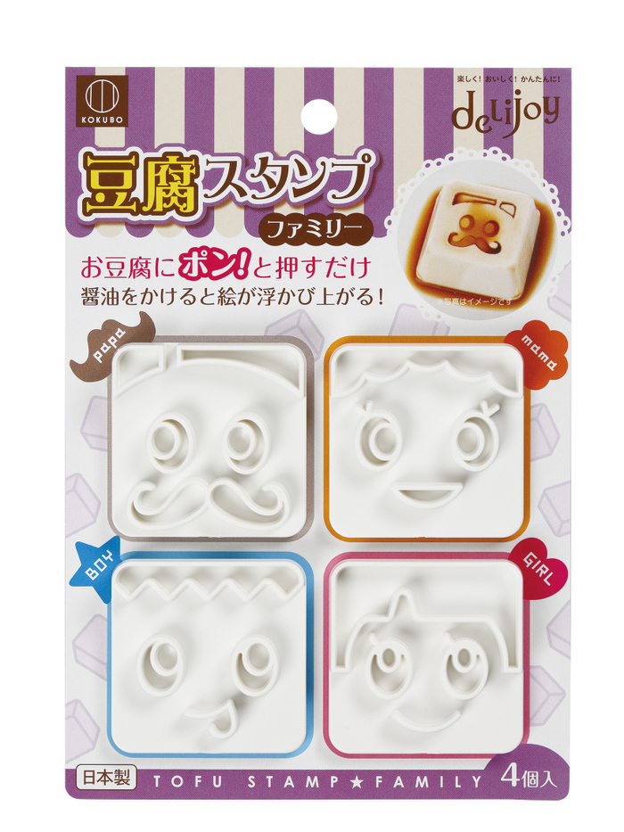 6cm角以上の絹ごし豆腐と、豆腐スタンプ、醤油を用意します。