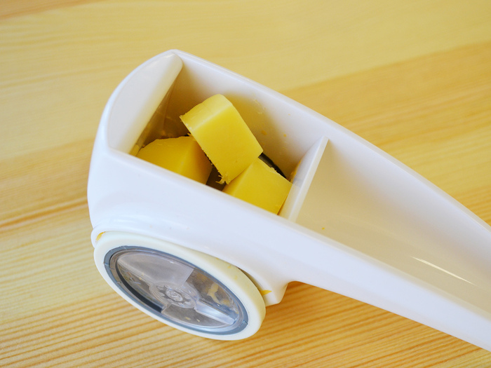 いかがでしたか? おろし金ドラムは内蔵されているので、おろしている最中に手が触れてケガをする心配もありません。