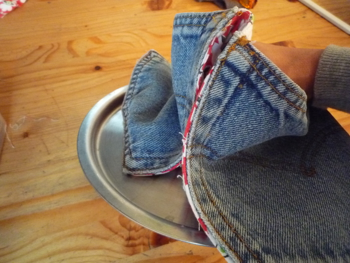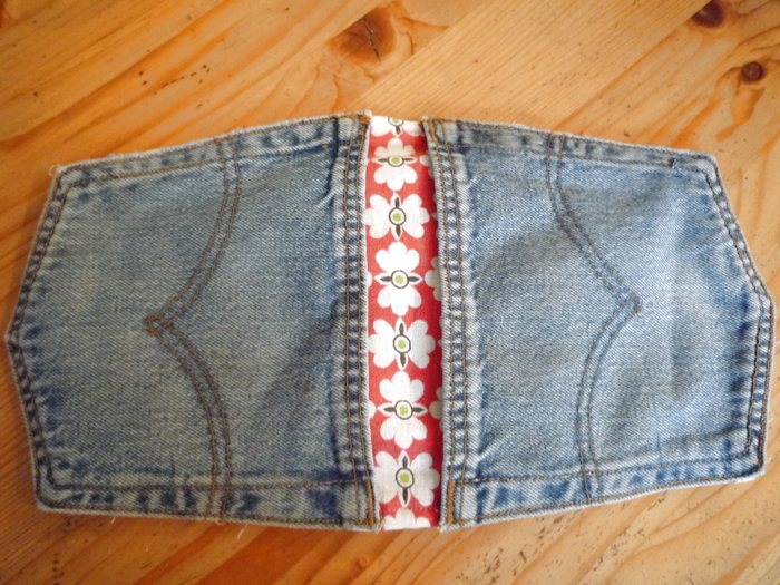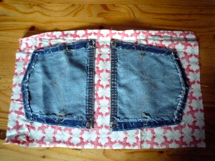 ジーンズの後ろポケット2枚、柄布、フリース(古着で結構です!)