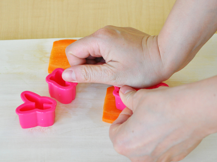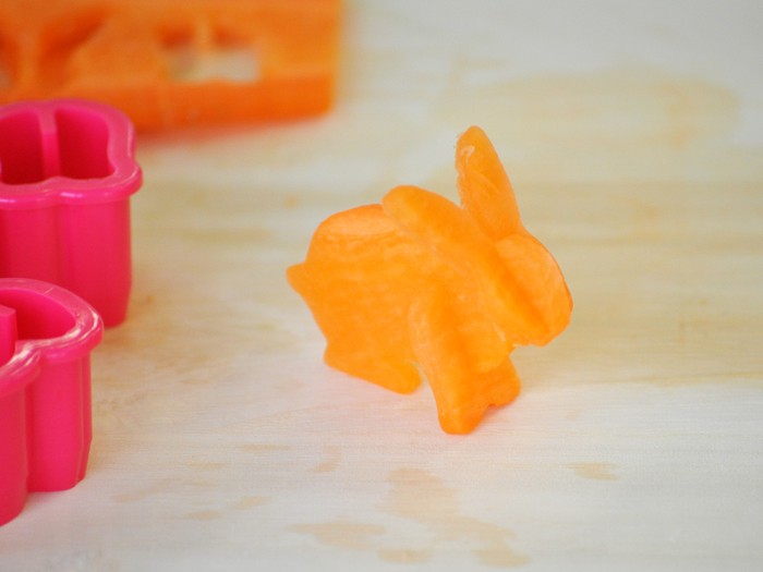 3mm厚さに切ったにんじんにウサギの型を乗せます。