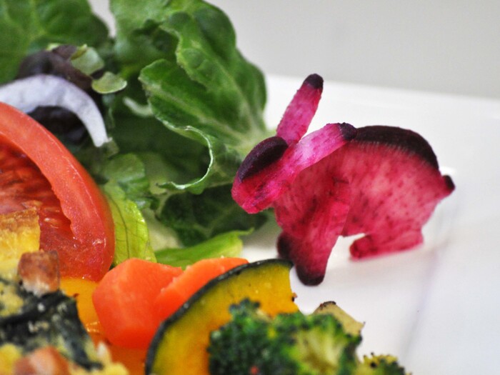 いかがでしたか? にんじん、大根、紅芯(こうしん)大根、かぶ、さつまいも、りんご、梨、硬めのプロセスチーズ、3mm厚さのハムでも作れますよ。お子さんといっしょでも楽しくできちゃいます。野菜きらいなお子様にもぜひ♪