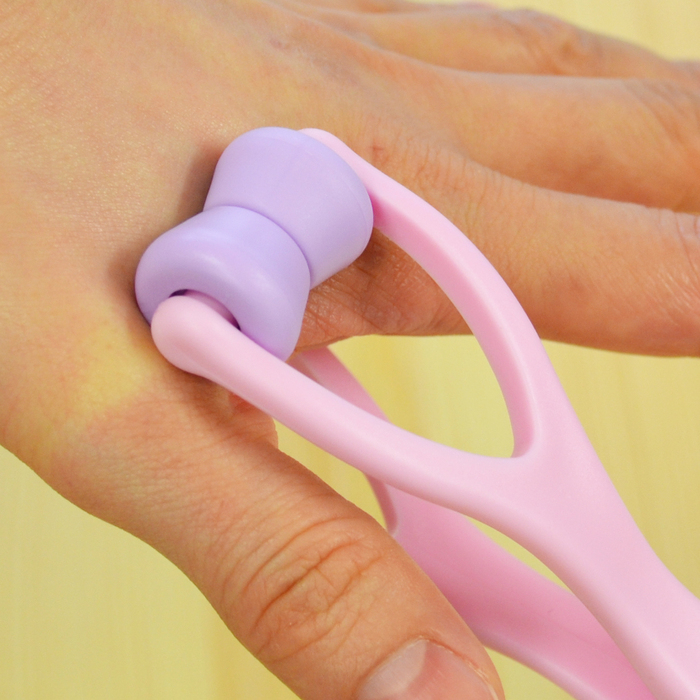 たるんでしまった顔周りを引き締めて、ちょっとでもきれいに見せたい。そんなときに手軽に使えるコガオローラーでやさしくマッサージしては。ローラーが両方のフェイスラインにほどよくフィットします。