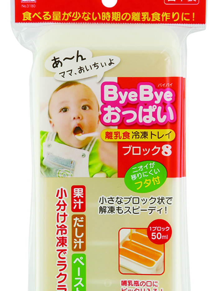 離乳食を小分け冷凍するトレイ。果汁、だし汁、ペースト、おかゆ等に。フタ付きで冷凍庫内の臭いも移りにくく衛生的です。ブロック状で解凍もスピーディ。