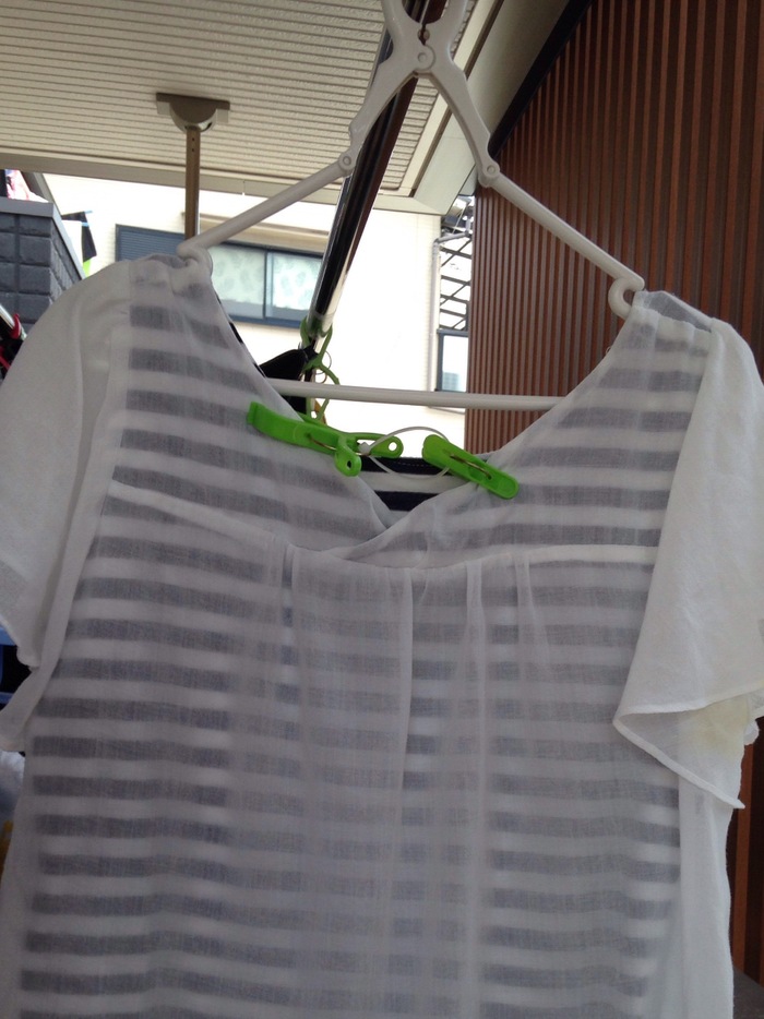 いつも2本の物干に平行にズボンやパンツなどを干しています