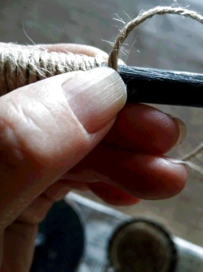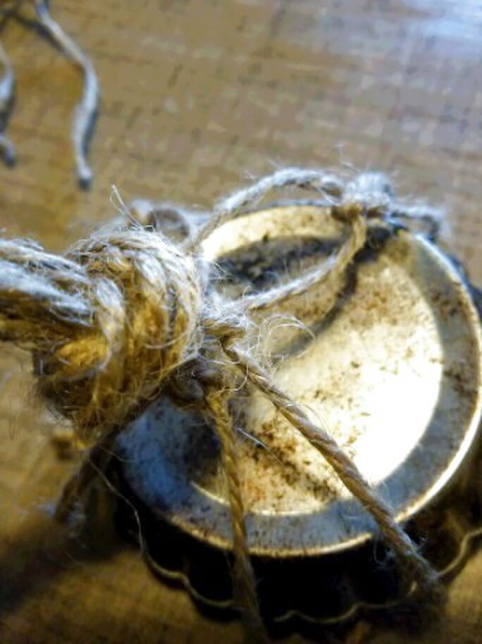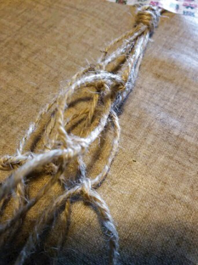 工作材の両サイドに麻ひもをクルクル巻いてボンドで止めます。(お好みで)