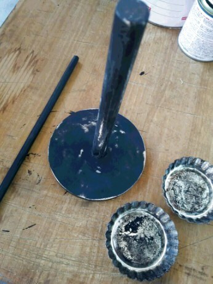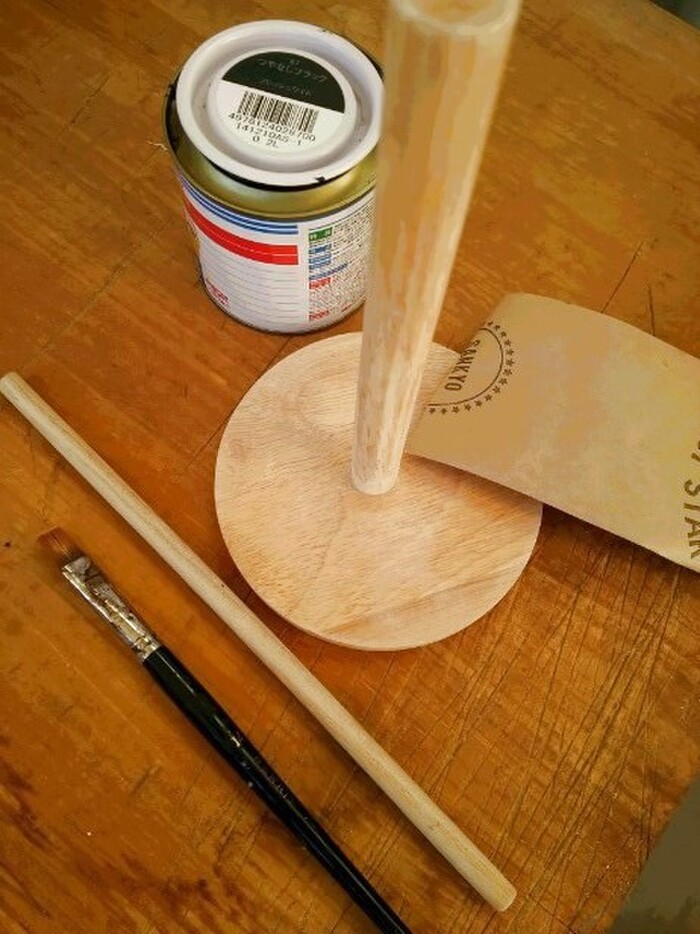ペーパースタンドと工作材は乾いたらヤスリでゴシゴシしてペンキをちょこっとはがして古びた感じを出します。