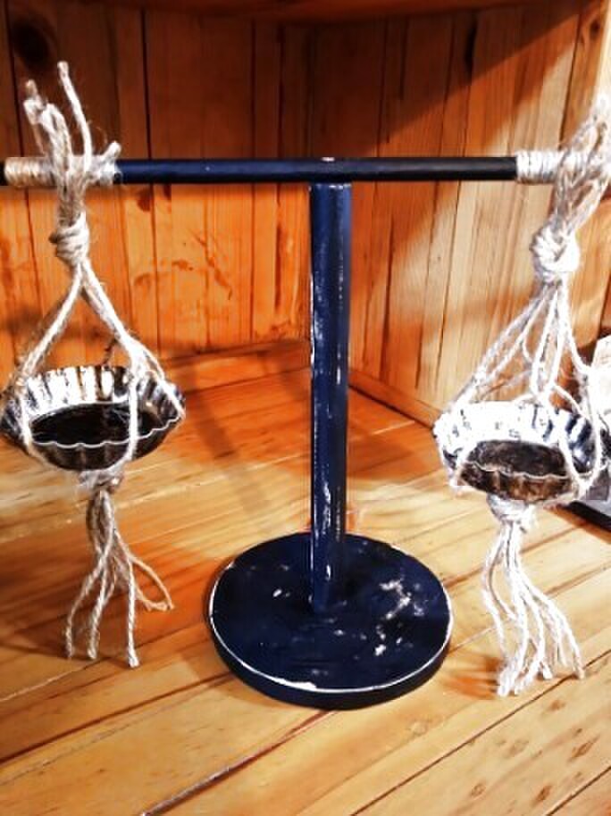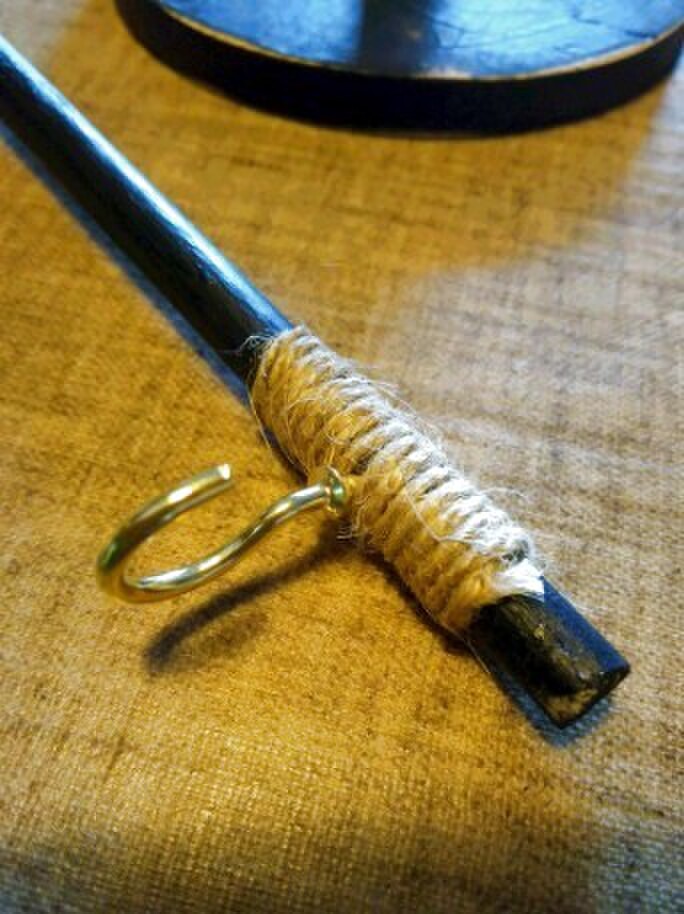 工作材の上に巻いた麻ひも部分にネジフックを両サイドに入れます。