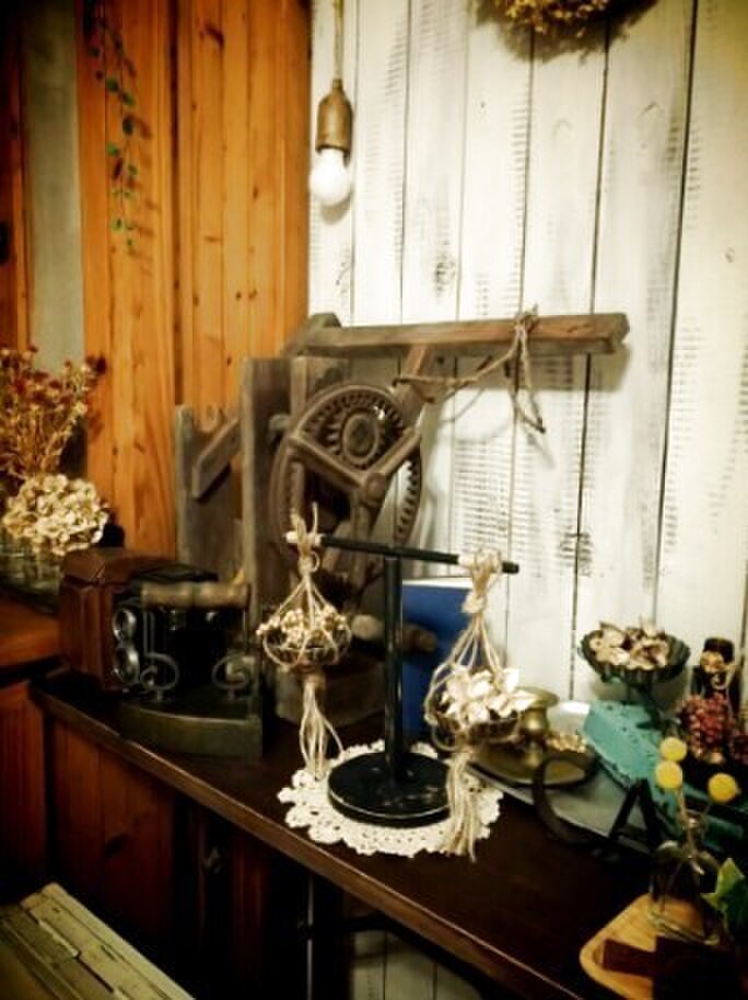 ドライの実をマドレーヌ型に乗せて飾りました。カフェにちょこんとありそうな♪フランスアンティーク風にも古道具風にも雰囲気を演出できそうです!
