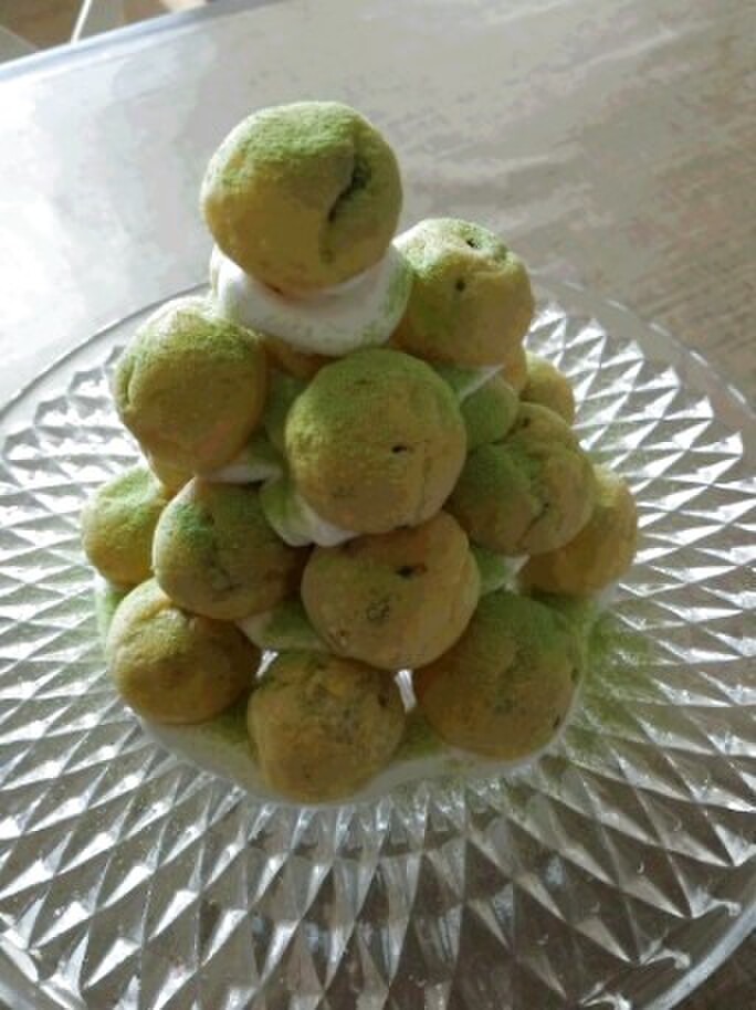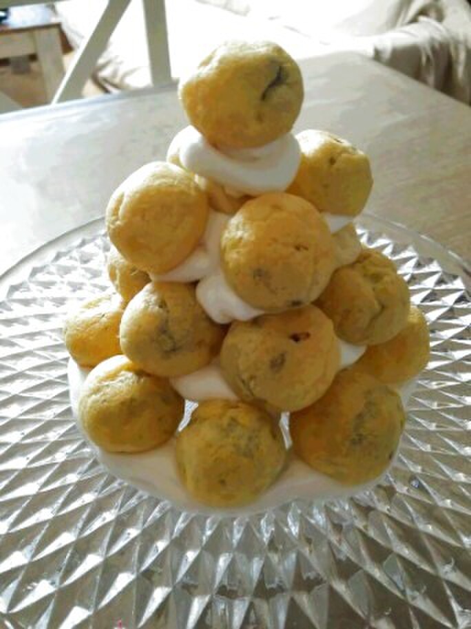 ホイップを接着剤代わりにどんどんチョコシューを積んでいきます