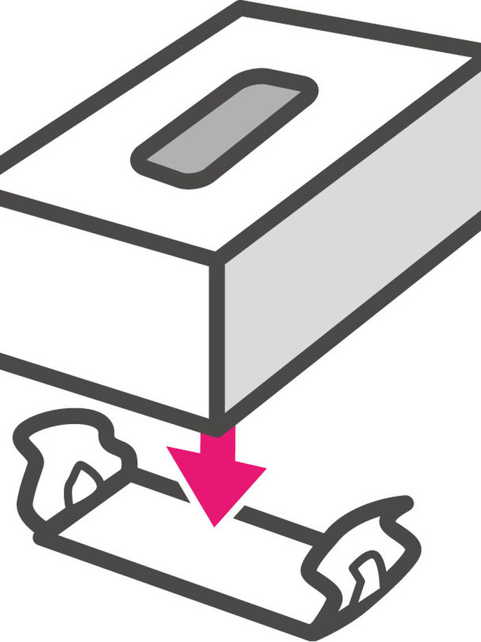 【取り付け方】 先にホルダーを壁に貼り、2時間たったらティッシュ箱をはめ込みます。