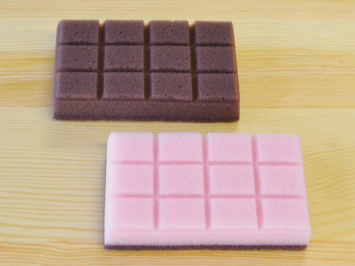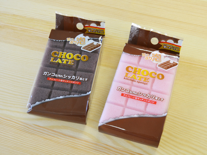 まるでブロックチョコみたいなキッチン用スポンジ。楽しい見た目だけでなく、たっぷりな泡立ちでガンコな汚れをしっかり落とします。